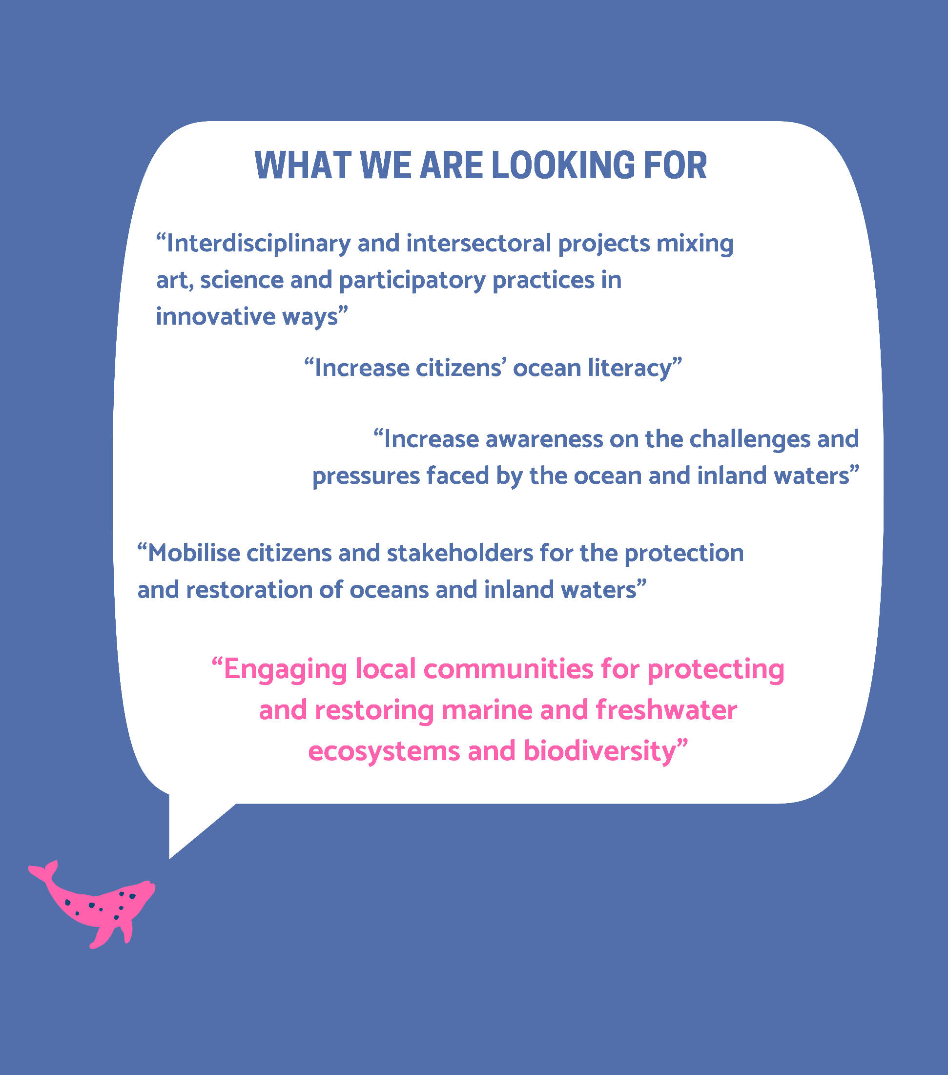 - Develop a strong transdisciplinary and trans-European network of artistic and creative communities to protect and restore oceans and inland water;