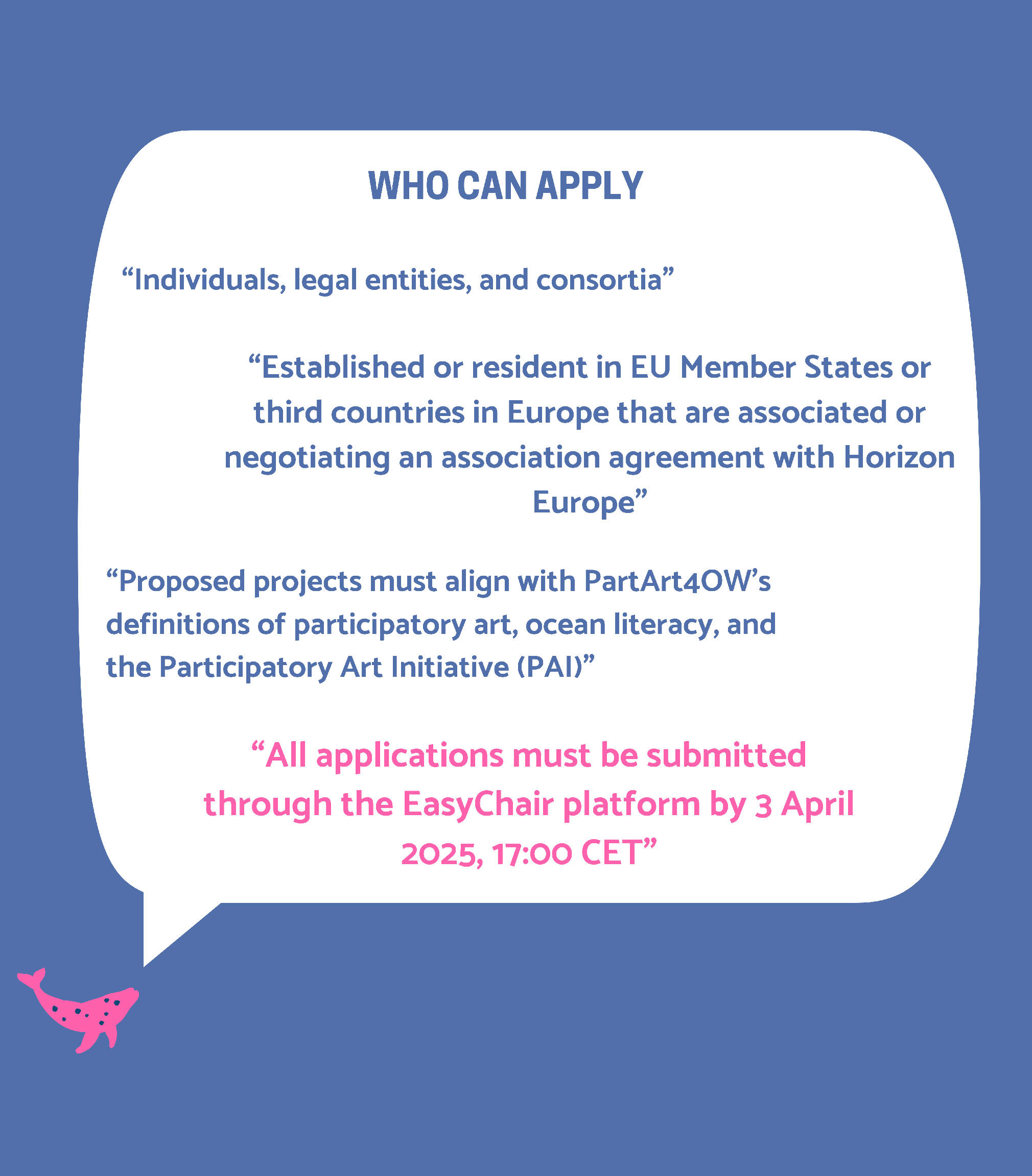 If you need any further assistance please contact CMMI at opencall@partart4ow.eu